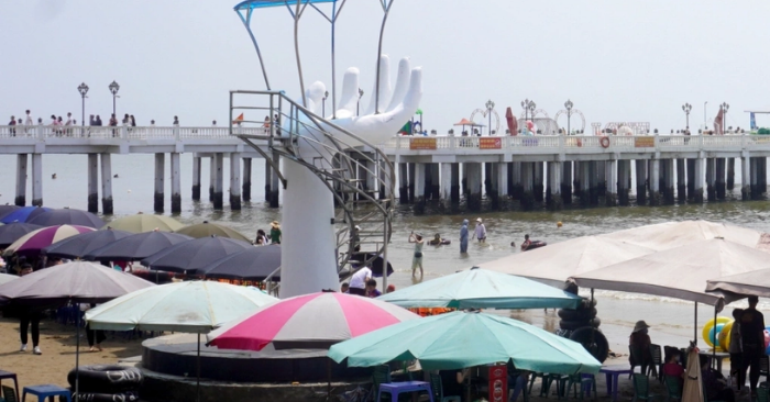 Thanh Hóa – Năm bức tượng cánh tay bằng bê tông trên bờ biển khu du lịch Hải Tiến đã được tháo dỡ do bị sóng đánh xô lệch, hư hỏng sau bão Kajiki, tiềm ẩn nguy cơ mất an toàn và gây ảnh hưởng mỹ quan cảnh quan ven biển