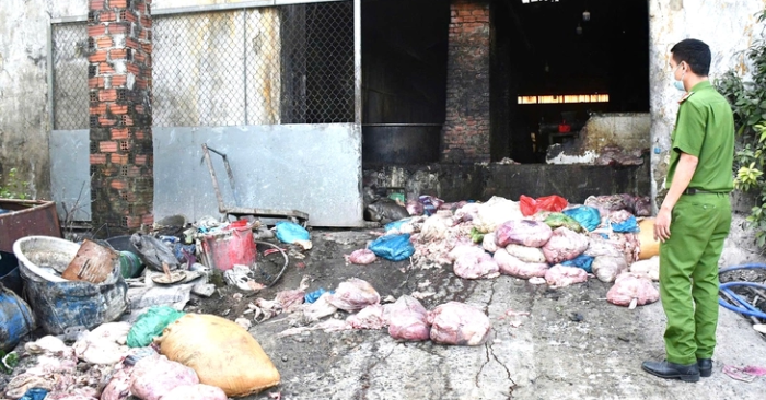 Trong lần kiểm tra đột xuất, lực lượng chức năng phát hiện cơ sở do một người đàn ông trú xã Xuân Phú làm chủ, thuê 3 lao động trực tiếp chế biến mỡ động vật trong điều kiện vệ sinh không bảo đảm.