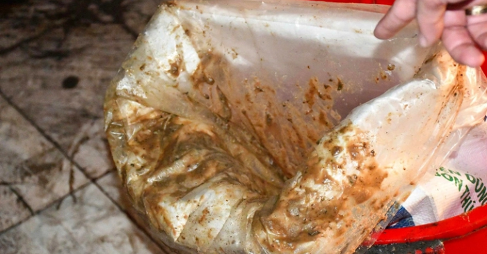 Các túi ni lông chứa mỡ động vật ( Ảnh Tuổi Trẻ)