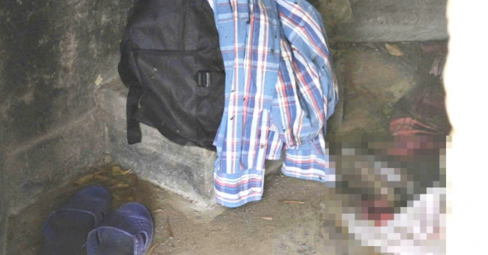 Qua kiểm tra ban đầu, nạn nhân là nam giới, mặc quần áo màu tối, trên tay có đeo đồng hồ. Bên cạnh thi thể còn có đôi dép nhựa màu xanh mực, một ba lô màu đen và chiếc áo caro ba màu xanh – trắng – nâu. Thi thể đang trong giai đoạn phân hủy mạnh.