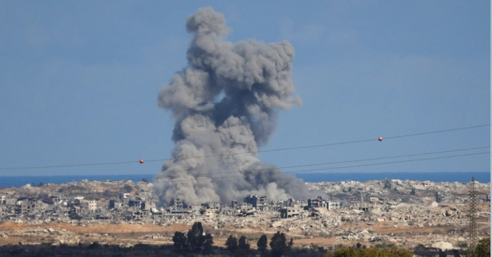 Khói bốc lên từ các vụ nổ xảy ra ở Gaza trong ngày 7-10 (Ảnh: REUTERS)