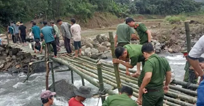 Trước tình hình đó, sáng 1/11, chính quyền xã phối hợp cùng người dân khẩn trương dựng lại cầu tre tạm. Người dân đóng góp tre, chuyển vật liệu xuống bờ suối; lực lượng chức năng hỗ trợ gia cố móng, dựng khung và kết nối các thanh tre. Đến trưa cùng ngày, cây cầu tre dài hơn 15m đã hoàn tất, giúp người dân nối lại giao thông, đi lại và sản xuất thuận tiện hơn.