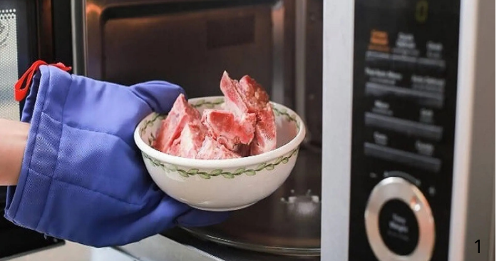Lò vi sóng là giải pháp nhanh gọn khi cần nấu ăn gấp. Chế độ rã đông giúp làm mềm thịt chỉ sau vài phút. Tuy nhiên, cần cắt thịt thành miếng vừa và kiểm tra thường xuyên để tránh tình trạng phần ngoài bắt đầu chín, phần trong còn đông cứng.