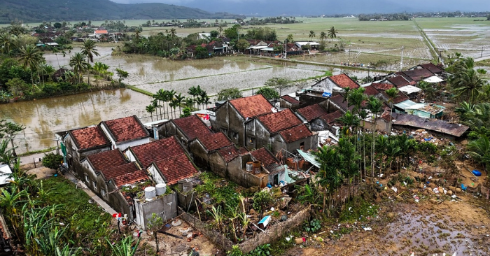 Chiều 24-11, thôn Mỹ Điền – vùng rốn lũ của Phú Yên cũ (nay thuộc Đắk Lắk) – vẫn phủ lên màu tan hoang: mái ngói vỡ, tường nứt, bùn đất và rơm rạ còn bám trên các mái nhà. Nhiều căn bị sập gần như hoàn toàn, đặc biệt những nhà xoay lưng về dòng nước bị dòng lũ nghiền nát từ phía sau.