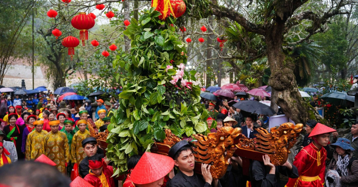 Năm nay, khoảng 10.000 cây hoa tre làm từ thanh tre tuốt bông nhuộm màu đã được chuẩn bị để trao tận tay khách thập phương,. Tại khu vực hậu cung, dòng người kiên nhẫn xếp hàng để nhận một cành lộc cùng trầu cau. Dù lượng người đổ về quá đông khiến nhiều người phải chờ đợi lâu hoặc ra về tay trắng; nhưng không khí lễ hội vẫn giữ được sự trang nghiêm và trật tự. Chị Nguyễn Thị Hạnh, một người dân tham gia lễ hội; chia sẻ rằng dù phải đợi 30 phút mới đến lượt nhưng việc nhận được lộc chính thức từ nhà đền mang lại cảm giác vui vẻ và may mắn hơn nhiều so với việc mua lại bên ngoài.