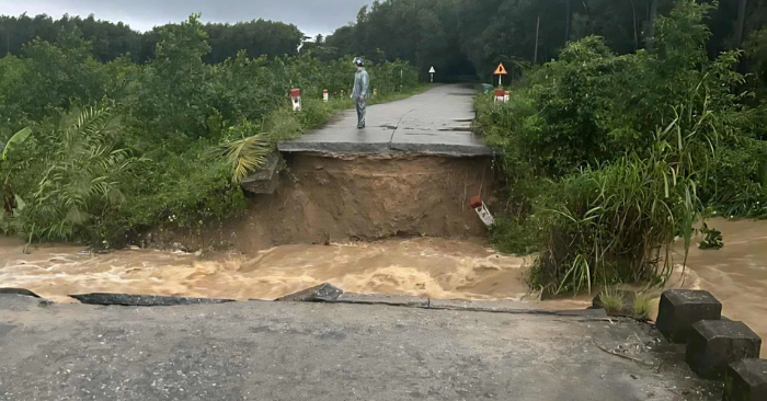 Sáng 2/11, ông Đặng Thanh Thuận, Bí thư xã Bình Minh (huyện Bình Sơn, tỉnh Quảng Ngãi) cho biết; nước lũ dâng cao đã làm sập cầu Cây Sung dài khoảng 12 m; nối thôn Phước An với trung tâm xã. Rất may, sự cố không gây thiệt hại về người.