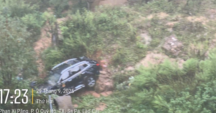 Chiều 29/9 tại khu vực ta luy âm đường Fansipan, phường Sa Pa (Lào Cai), một chiếc ô tô bị trượt xuống vách đá sâu khoảng 60 m do sạt lở đất ảnh hưởng mưa bão. Ba hành khách may mắn được lực lượng chức năng đưa ra an toàn, không ai bị thương.