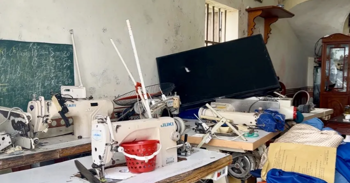 Trước hiên nhà, xưởng may của gia đình chỉ còn đống đổ nát. Hai mươi chiếc máy may vốn là nguồn sống cho cả gia đình và nhiều người trong thôn bị cuốn đi. Hàng chục thùng vải mới nhập cũng biến mất theo gió.