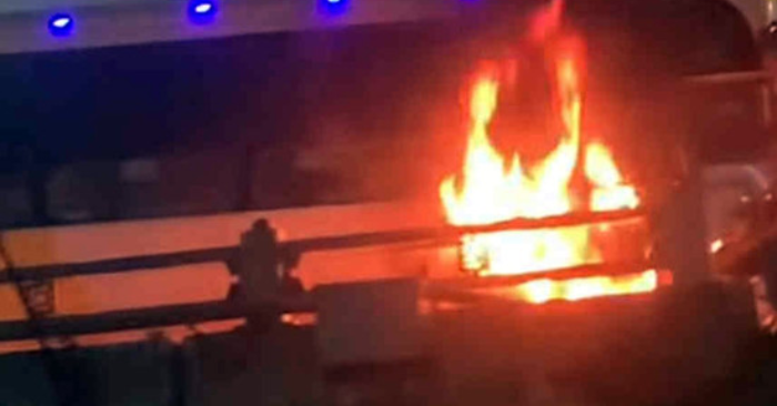 Tiếp nối chuỗi sự cố, ô tô khách lao thêm quãng đường ngắn trước khi tiếp xúc với thành bê tông của cầu, dẫn đến hư hỏng nặng và cháy nổ. Ngọn lửa bùng phát từ khoang động cơ, lan sang các bộ phận dễ cháy, tạo khói đen đặc quánh che khuất tầm nhìn. Nhờ phản ứng nhanh nhạy của cư dân gần đó và đội ngũ cứu hỏa, đám cháy được khống chế kịp thời, ngăn chặn nguy cơ lan rộng sang các xe khác đang kẹt lại.