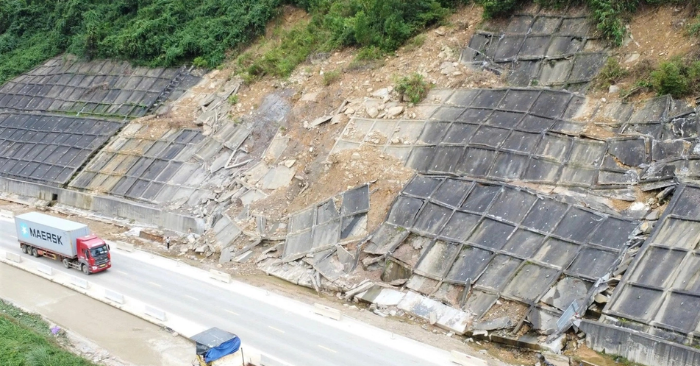 Nhiều vị trí sạt lở nghiêm trọng đã được ghi nhận; trong đó khu vực km41-km43 xuất hiện hơn 4 điểm hư hỏng lớn ở taluy dương, còn tại km50; taluy âm trượt sâu gây nứt mặt đường và làm sập tường chắn. Chủ đầu tư đã lắp dải phân cách bê tông, căng dây cảnh báo ;và đặt biển hướng dẫn từ xa để đảm bảo an toàn cho phương tiện.