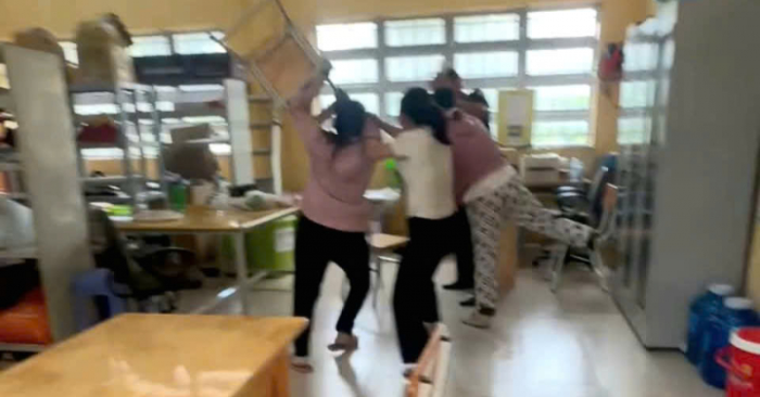 Chiều 27/10, khi sự việc vẫn đang trong quá trình xác minh, mẹ ruột của em L. cùng một người phụ nữ khác bất ngờ xông vào trường, tìm đến phòng thiết bị – nơi thầy T. đang làm việc – và dùng vật dụng tấn công thầy giáo cùng những người can ngăn. Hai người này còn buông lời thóa mạ, xúc phạm Ban Giám hiệu, khiến khuôn viên trường học trở nên hỗn loạn.