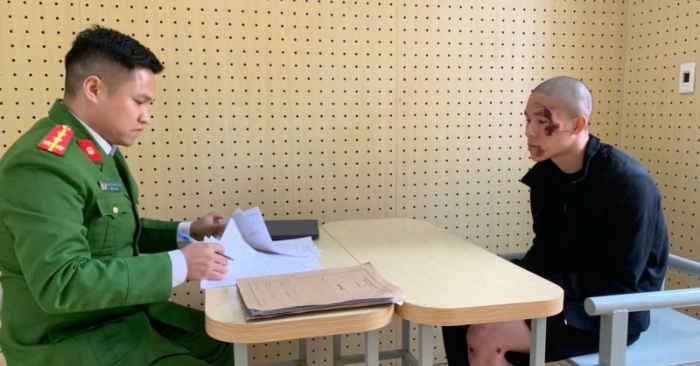 Công an tỉnh Phú Thọ lấy lời khai đối tượng Nguyễn Anh Tuấn. (Ảnh: Chụp màn hình/Khai Mở)