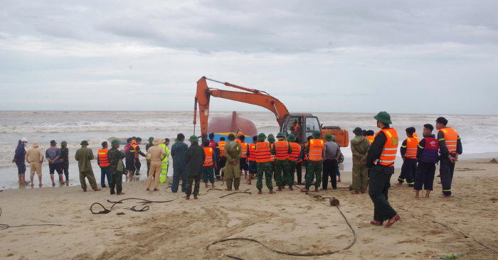 Do sóng to và gió lớn, việc kéo tàu vào bờ gặp nhiều khó khăn, dù lực lượng đã sử dụng dây cáp, cẩu chuyên dụng và các biện pháp phá vỡ phần vỏ tàu để tiếp cận khoang chứa nạn nhân.