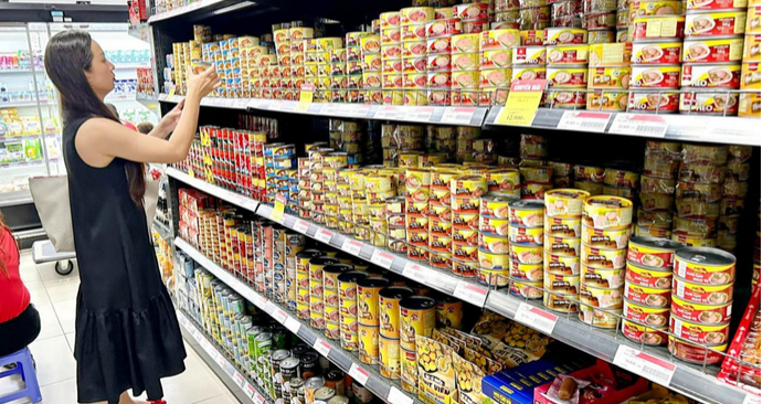 Ghi nhận tại các siêu thị cho thấy thực phẩm đóng hộp được bày bán ngày càng đa dạng, từ thịt heo, thịt bò, gia cầm, cá hộp, hải sản đến rau củ, xúp và các bữa ăn chế biến sẵn. Trong đó, thịt và cá hộp chiếm tỷ trọng lớn nhờ giàu đạm, giá hợp lý và thời hạn bảo quản dài.