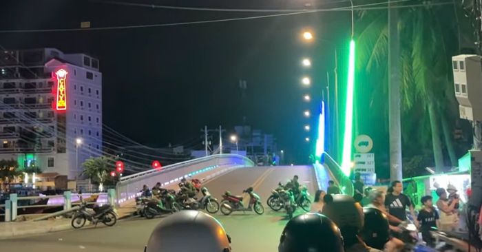 Khoảng 20h40 ngày 25-10, em N.M.T. (16 tuổi, quê Vĩnh Long) điều khiển xe đạp điện chở anh ruột 22 tuổi lưu thông qua cầu. Trước đó, trong lúc di chuyển, T. có nhìn về phía một thanh niên đang dừng xe máy mua thức ăn bên đường.