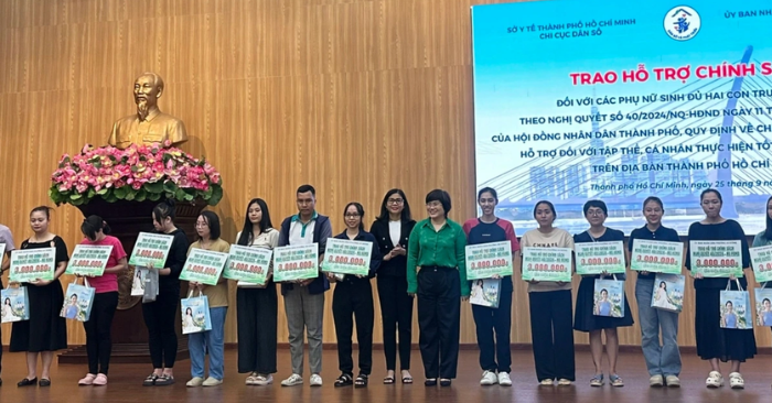 Từ năm 2024, TPHCM áp dụng hỗ trợ 3-5 triệu đồng cho phụ nữ sinh đủ 2 con trước 35 tuổi, nhằm giải quyết mức sinh thấp và già hóa dân số.