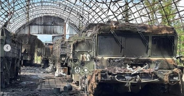 Nguồn tin Nga công bố hình ảnh từ hiện trường cho thấy nhiều xe phóng thuộc tổ hợp tên lửa đạn đạo chiến thuật Iskander-M bị UAV Ukraine tấn công. Hình ảnh ghi nhận khung thân cháy xém, biến dạng, một số xe có dấu hiệu hư hỏng nặng. Điểm đáng chú ý là không có vụ nổ lớn nào xuất hiện, cho thấy các bệ phóng tại thời điểm đó chưa được nạp đạn.