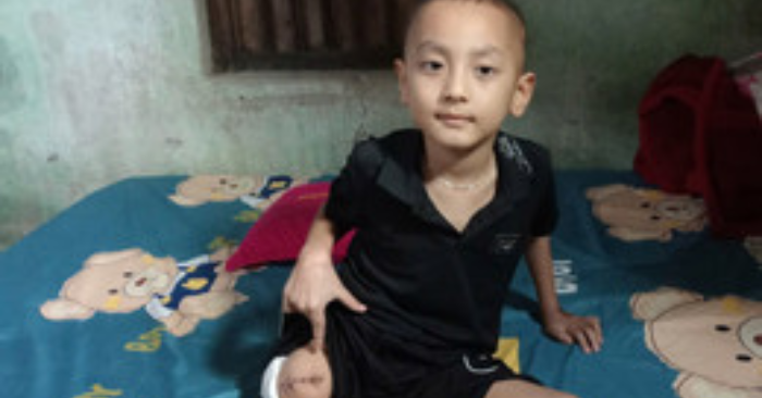 Suốt nhiều tháng, cậu bé 6 tuổi phải trải qua các đợt truyền hóa chất liên tục, cơ thể ngày càng gầy yếu. Dù vậy, khối u không thuyên giảm. Ngày 9/1/2026, để ngăn ung thư di căn và giữ lại mạng sống cho Đạt, các bác sĩ buộc phải phẫu thuật cắt bỏ toàn bộ chân phải của em.