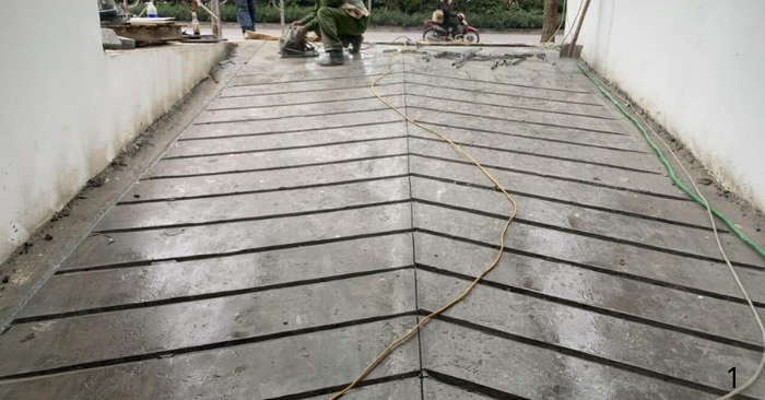 Với dốc dài dẫn xuống gara ô tô, rãnh chéo khoảng 30–45 độ giúp tăng độ bám, thoát nước tốt và giảm cảm giác xóc khi xe chạy qua. Khoảng cách rãnh thường từ 20–40 mm, độ sâu 5–10 mm, đủ an toàn mà không gây mòn lốp nhanh.