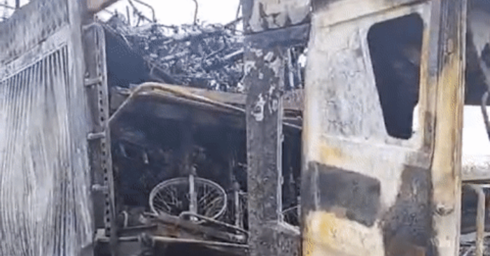 Xe đầu kéo chở 128 xe máy mới bốc cháy dữ dội lúc 2h sáng 17/11 trên đường Hồ Chí Minh đoạn qua Quảng Trị, bị thiêu rụi hoàn toàn chỉ còn khung sắt, thiệt hại khoảng 6 tỷ đồng dù không ai bị thương
