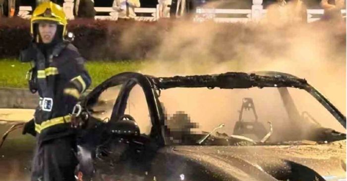 Vụ hỏa hoạn xảy ra rạng sáng 13/10 trên đại lộ Thiên Phủ (Thành Đô). Nhiều người chứng kiến nỗ lực đập vỡ kính nhưng không thể mở cửa cứu tài xế. Khi lực lượng cứu hỏa dập tắt ngọn lửa, chiếc xe chỉ còn trơ khung. Lính cứu hỏa phải dùng thiết bị cắt kim loại chuyên dụng để mở cửa xe.
