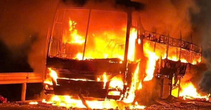 Xe khách chở 34 người lưu thông trên quốc lộ 1, đoạn qua tỉnh Đắk Lắk, bất ngờ bốc cháy dữ dội trong đêm. May mắn toàn bộ hành khách và tài xế kịp thời thoát ra ngoài nên không có thiệt hại về người.